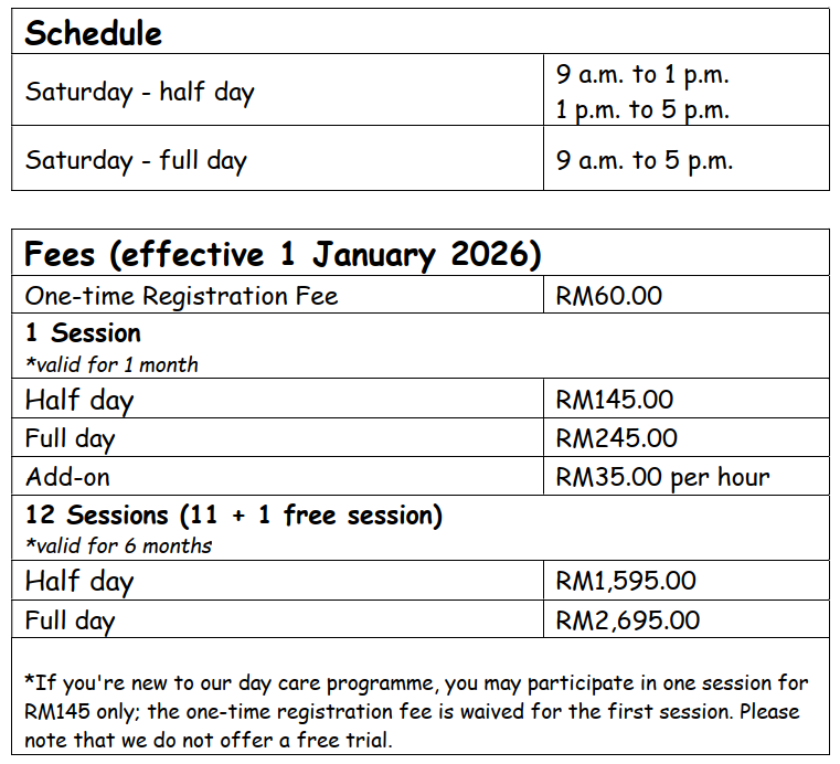 Our Saturday Care & Play focuses on gentle, attentive care, providing a safe, warm, and welcoming environment where children feel secure and comfortable while parents attend to work or personal commitments.